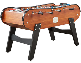 La caisse en MDF de couleur chêne assure à la fois une solidité et une esthétique vintage, permettant à ce baby-foot de se fondre facilement dans tout type de décor. Il est doté de barres télescopiques équipées de joueurs en fonte d’aluminium peints à la main (bleu et rouge), ce qui garantit une expérience de jeu fidèle à celle des véritables tables de café. Avec un poids de 78 kg, ce modèle bénéficie d’une grande stabilité, parfait pour des parties endiablées, qu’elles soient entre adultes sportifs ou en famille.