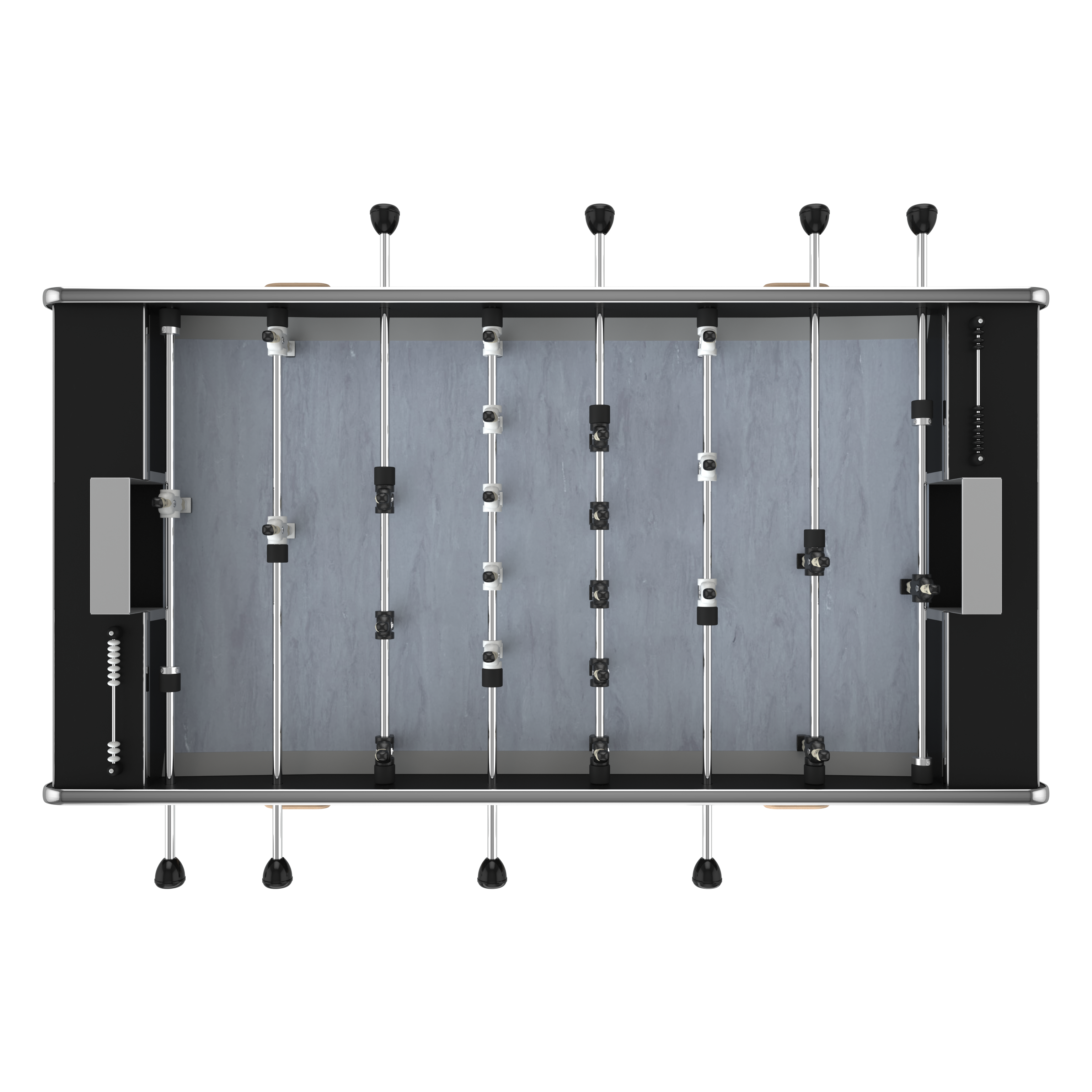 A noter : le baby foot Club est doté de bandes latérals obliques qui autorisent les balles sautées. Le traçage du fond de jeu et la couleur du tapis sont en option.