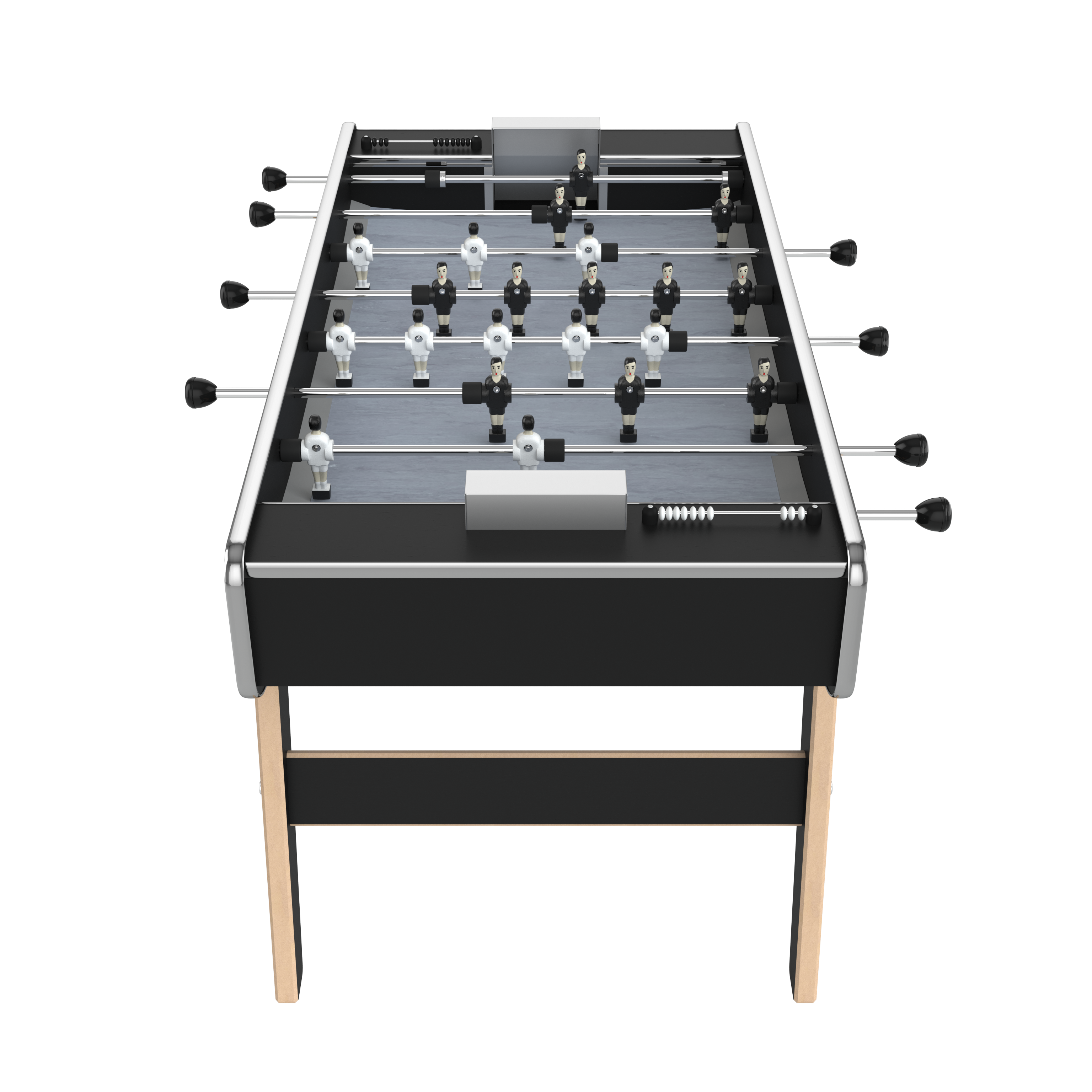 Ce magnifique baby foot de 158 x 100 x 93 cm permet à toute la famille, petits et grands, de disputer de vraies parties comme au café. Le meuble assemblé avec tiges métalliques de renfort et les amortisseurs en caoutchouc souple lui confèrent une grande résistance contre les chocs et un confort de jeu idéal pour les débutants.