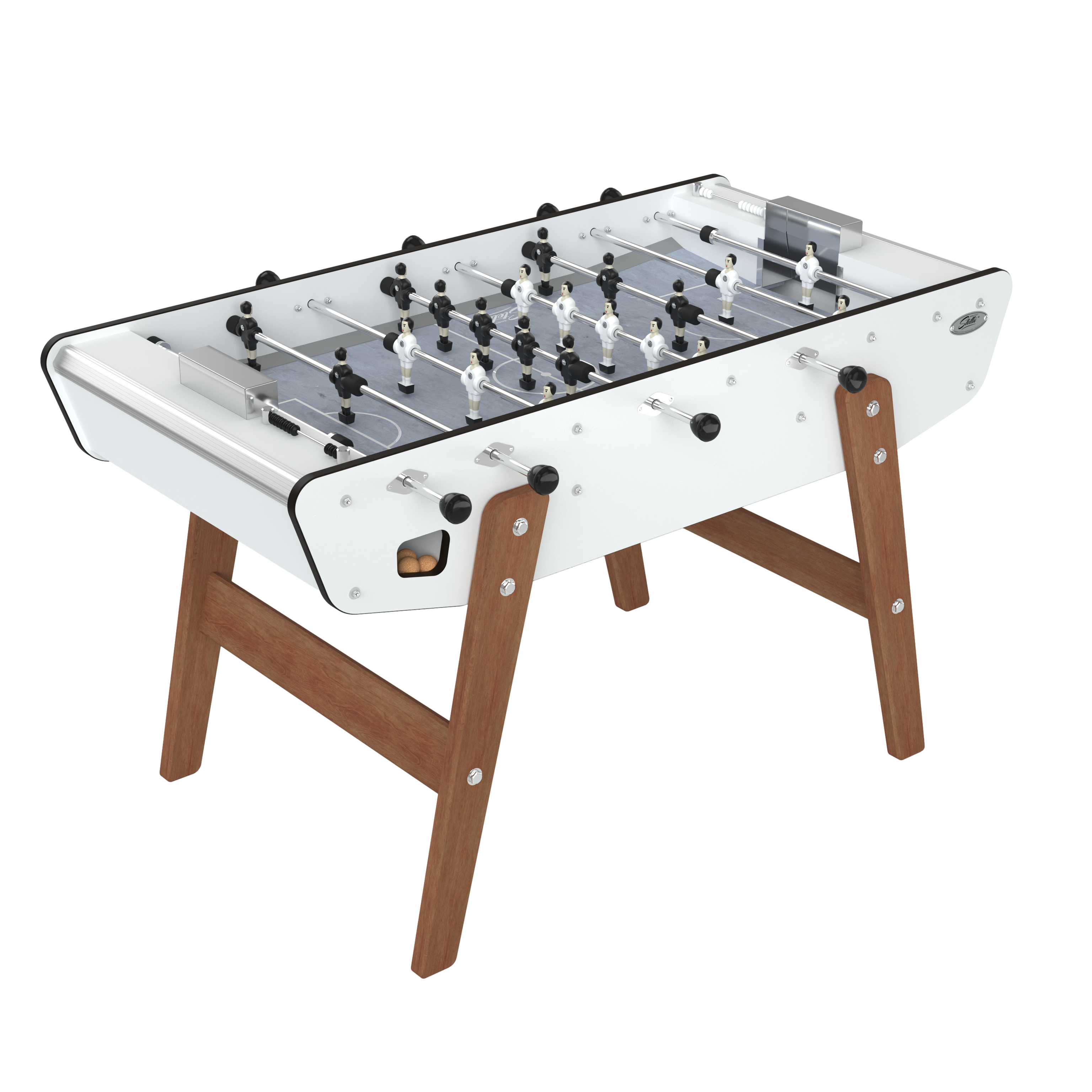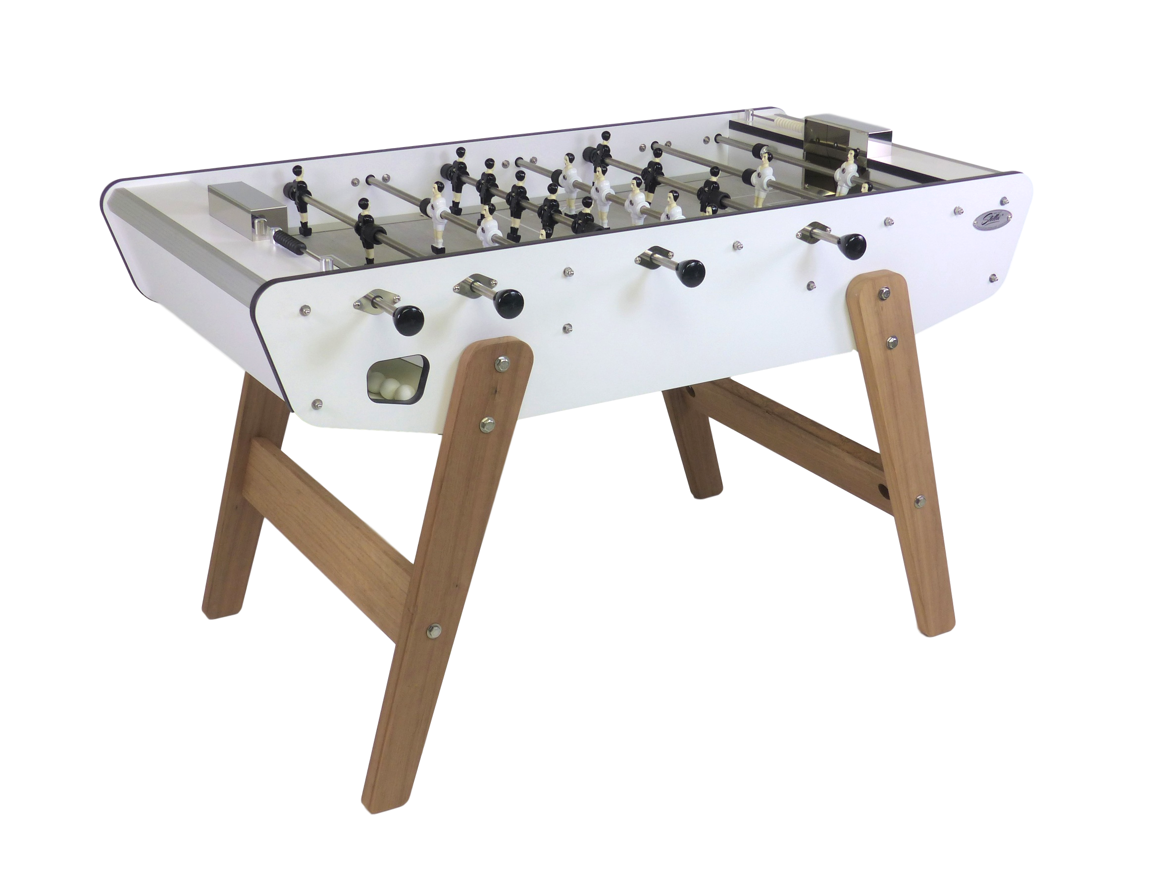 Sa caisse en stratifié est renforcée par des tiges inox et montée sur des pieds en bois imputrescibles. Sa surface de jeu en vinyl assure une bonne glisse pour un jeu rapide et fluide. Et parce que même à l'extérieur le confort est important, le baby foot Stella Outdoor a été équipé de paliers avec coussinets en polyamide autolubrifiant.