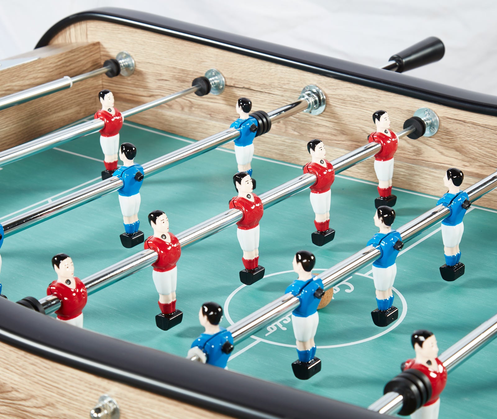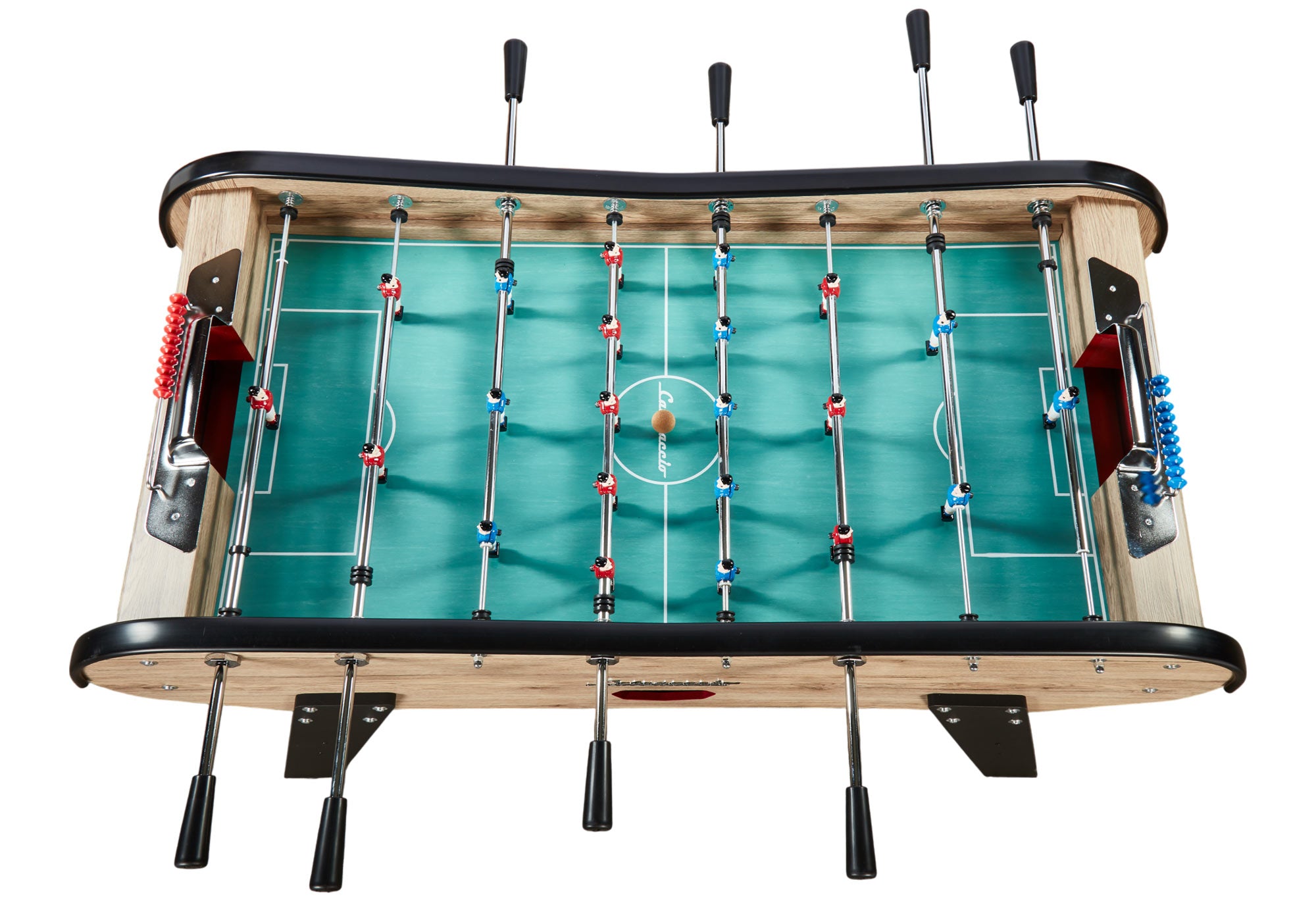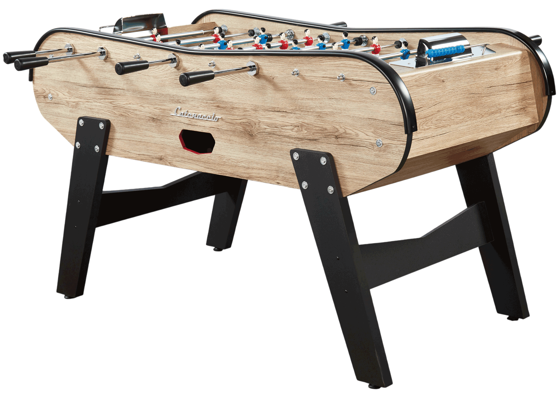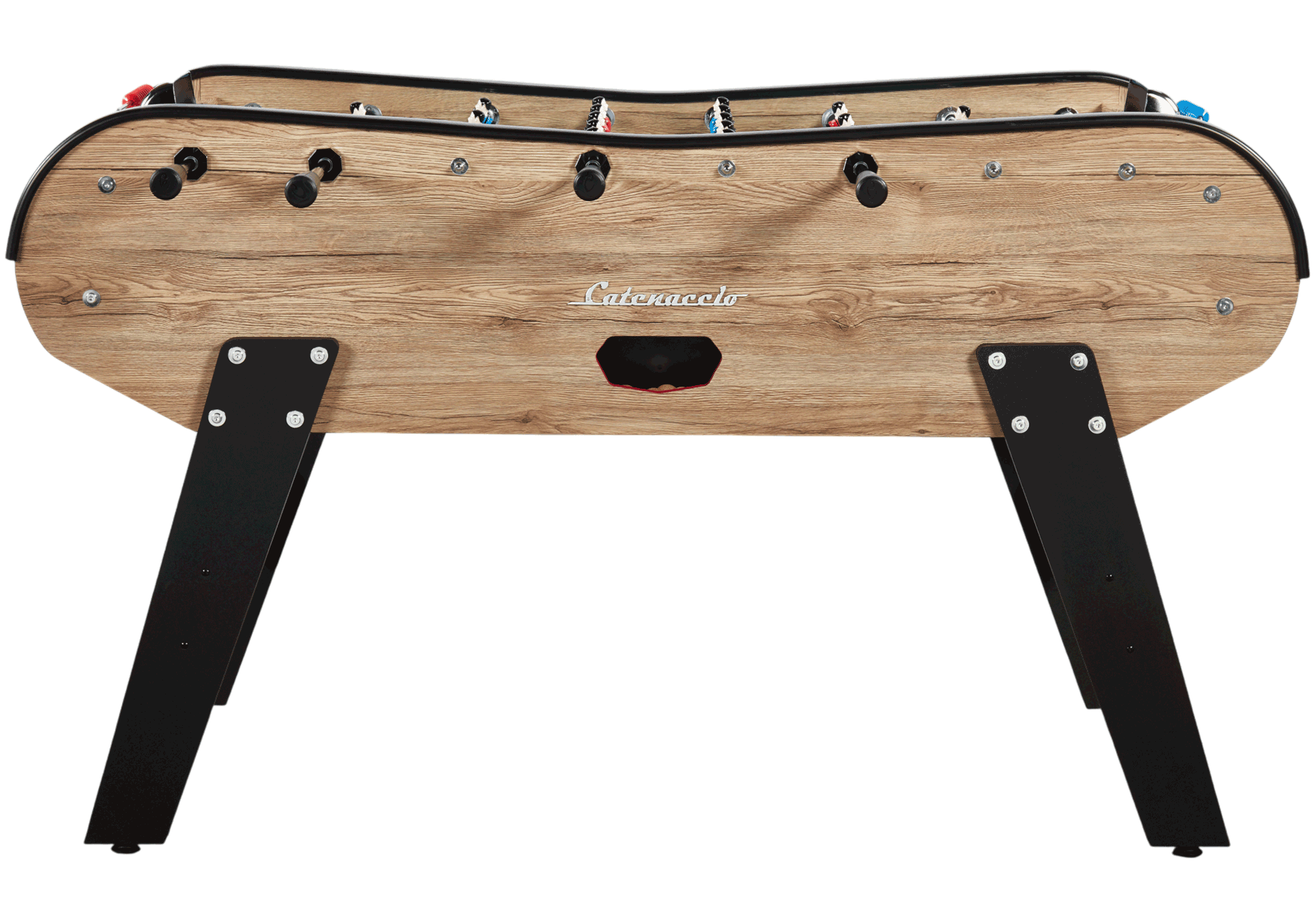 Le modèle Catenaccio Sportivo Chêne vieilli revisite le baby-foot emblématique de la marque avec une allure plus moderne et raffinée.